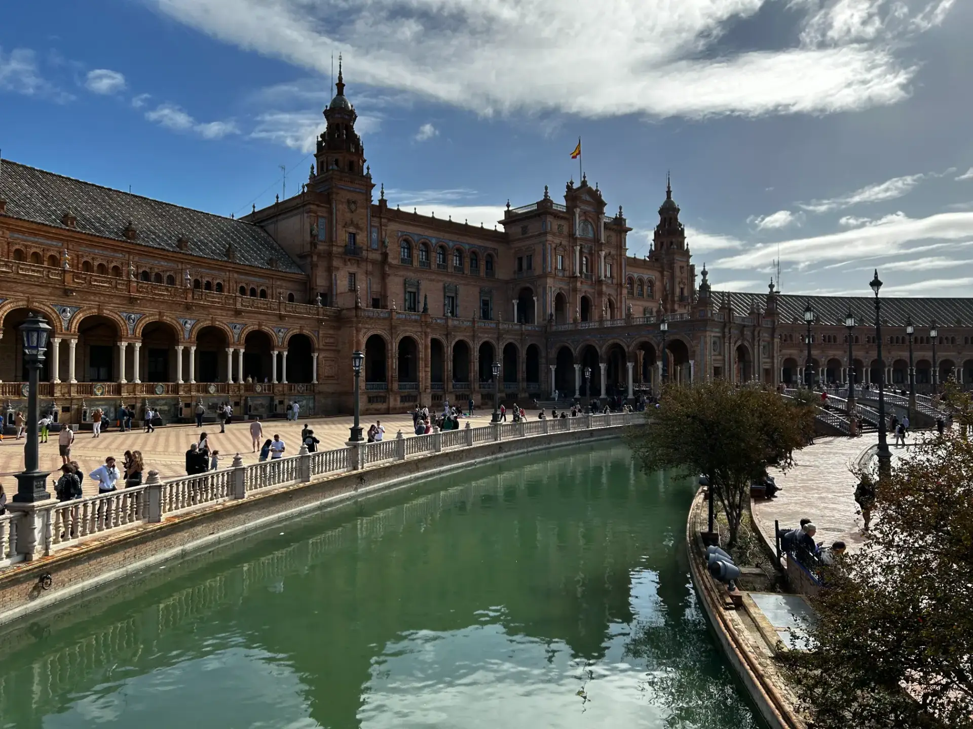 Bezoek het imposante Plaza de España. Het plein heeft de vorm van een enorme halve cirkel die volledig wordt omringd door gebouwen. Deze gebouwen vormden tijdens de wereldtentoonstelling van 1929 het paviljoen van Spanje.
